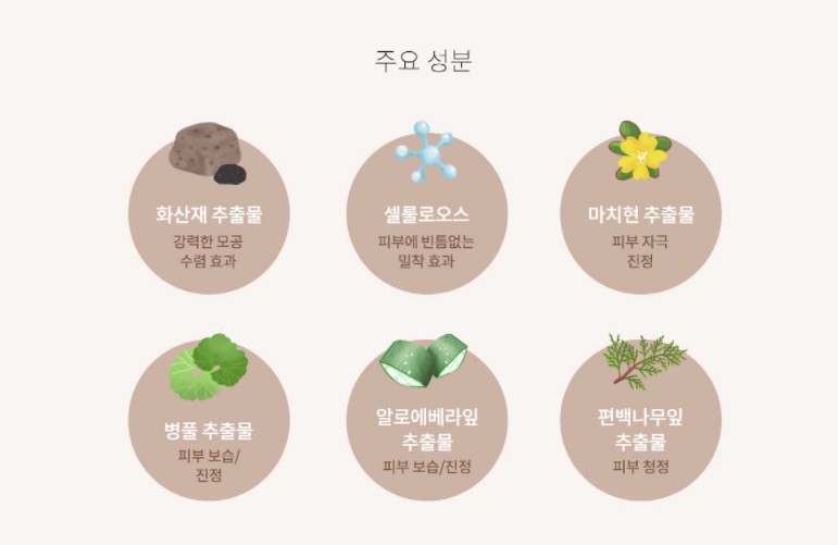 다공성 물질로 피부 노폐물이나 피지와 같은 유해물질을 쉽게 흡수할 뿐만 아니라