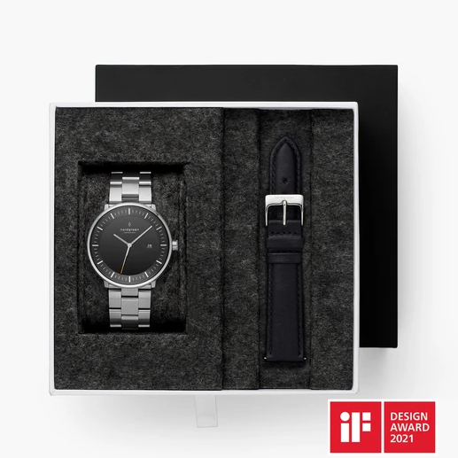 Philosopher - SET Black Dial Silver | 3 Link / Black Leather Straps