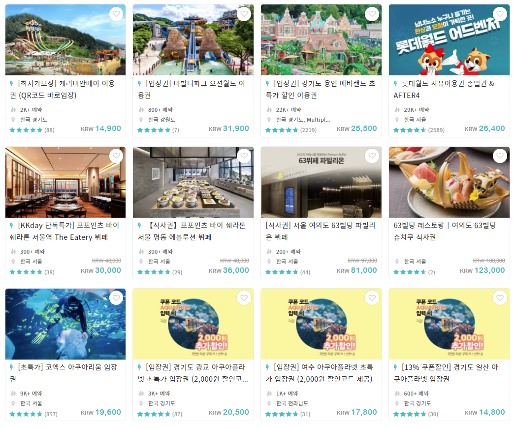 #캐리비안베이이용권, #비발디파크오션월드, #용인에버랜드초특가, #롯데월드자유이용권, #포포인츠바이쉐라톤뷔페, #포포인츠바이쉐라톤명동에볼루션뷔페, #여의도63빌딩파빌리온뷔페, #63빌딩슈치쿠식사권, #코엑스아쿠아리움입장권, #광교아쿠아플라넷입장권, #여수아쿠아플라넷입장권, #일산아쿠아플라넷입장권, #롯데호텔월드라세느식사권, #아르떼뮤지엄, #제주아쿠아플라넷미니언즈, #제주카페패스, #제주우도전기차, #제주렌트카찜카, #제주화조원조류동물원, #제주신화월드워터파크, #제주건강과성박물관, #제주신라호텔더파크뷰디너뷔페, #제주카멜리아힐, #제주패스렌트카할인, #제주윈드1947카트체험, #원마운트워터프크, #캠프통아일랜드수상레저, #아쿠아필드하남, #가평빠지수상레저, #가평수상레저