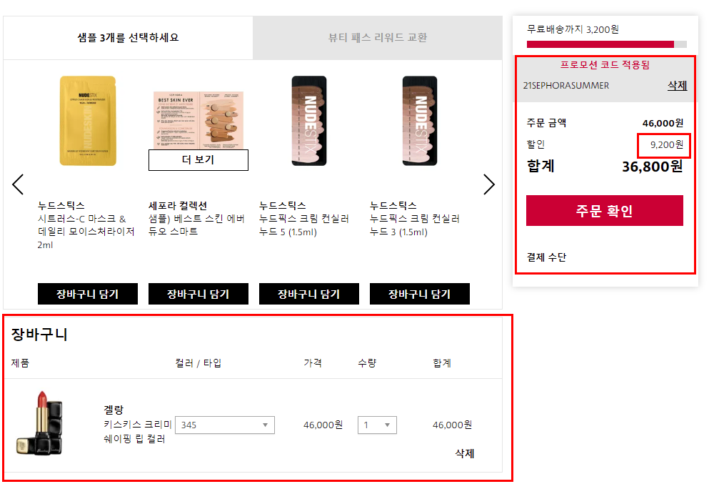 세포라 프로모션코드는 할인을 하지 않는 상품에 대해서