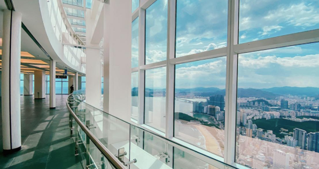 해운대 엘시티 제일 꼭대기층, 98~100층에서 광안대교, 동백섬, 마린시티 등 부산의 명소를