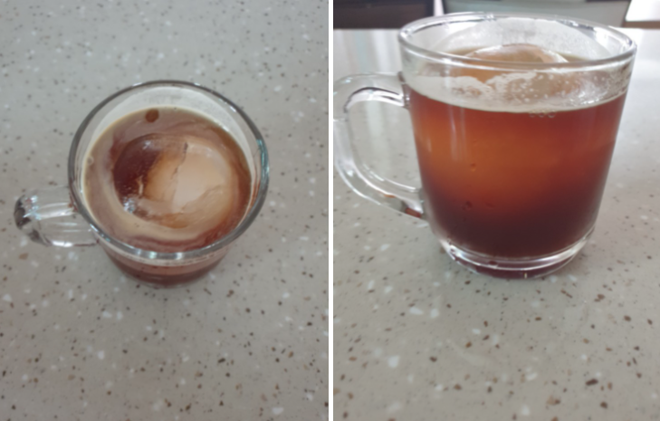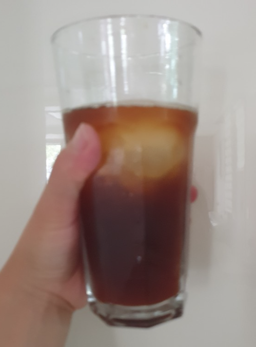 이렇게 만들어진 얼음을 얼른 아이스커피를 만들어서 넣어봤어요.