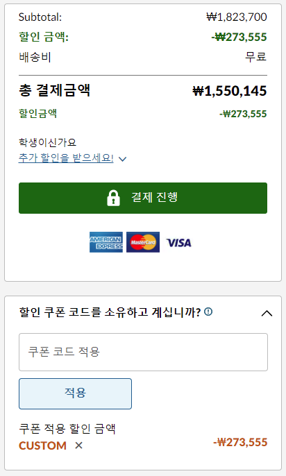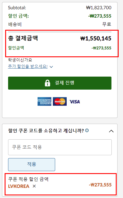 똑같이 1,550,145원으로 할인이 되더라구요.
