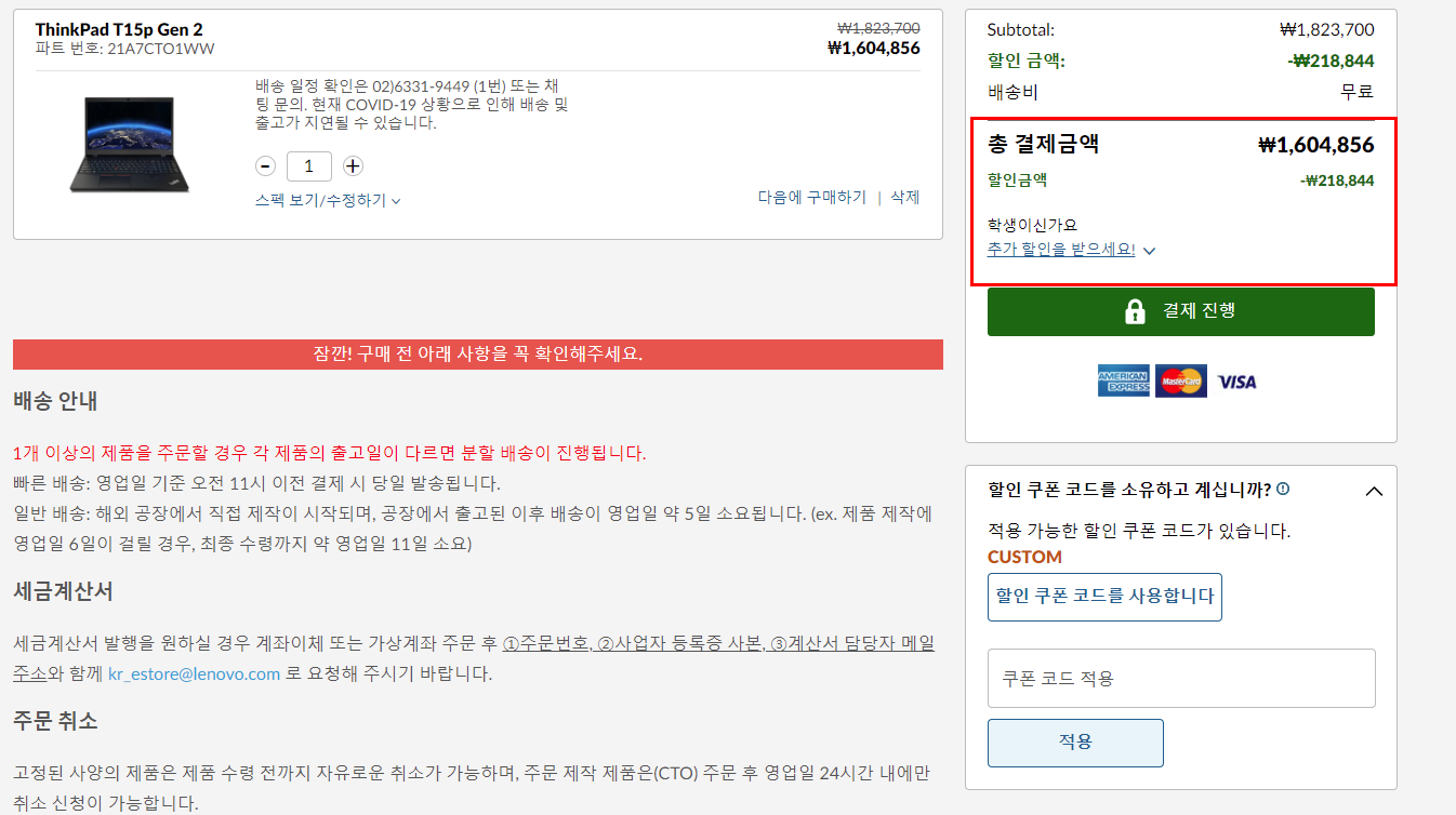 그럼 이상으로 워크스테이션 추천 씽크패드 T15p Gen 2 할인코드 확인 포스팅을
