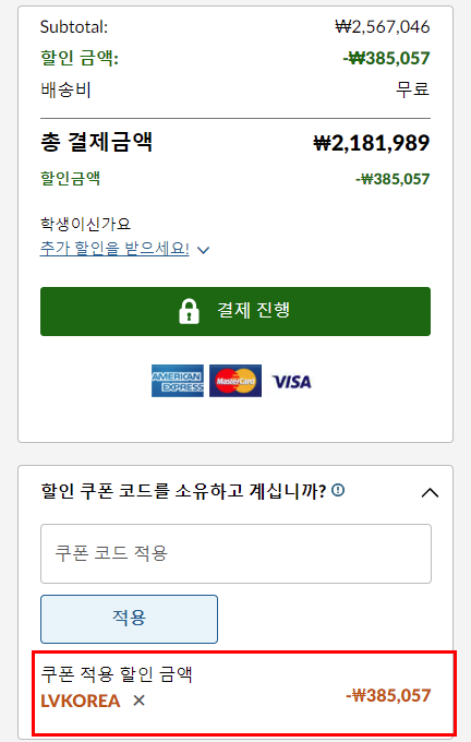 할인 쿠폰코드 : LVKOREA