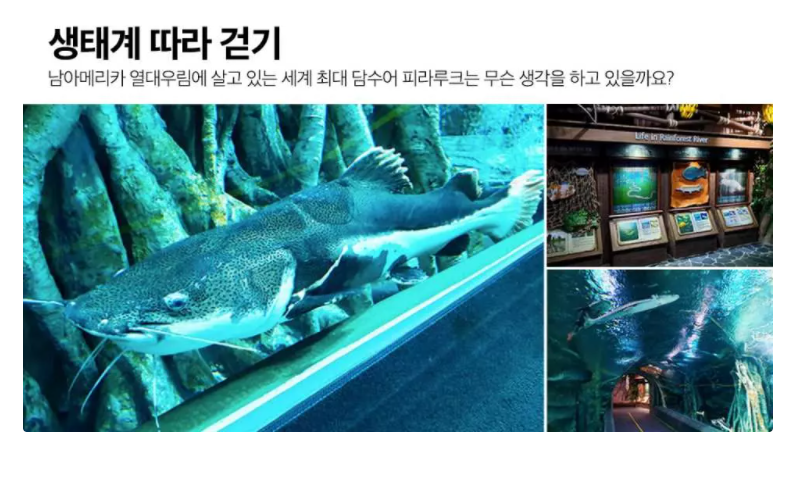 840M의 국내 최장 관람 동선, 국내 최다 14종 체험형 아쿠아리움으로, 볼거리 즐길거리가 가득하답니다.