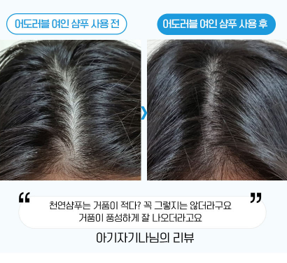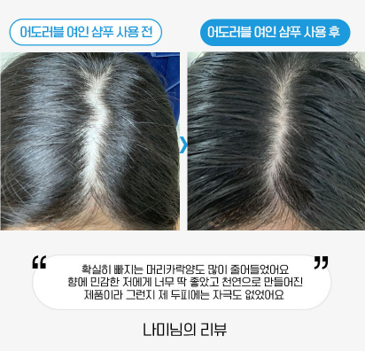 어도러블 탈모샴푸는 뻣뻣함도 없다고 하더라구요.
