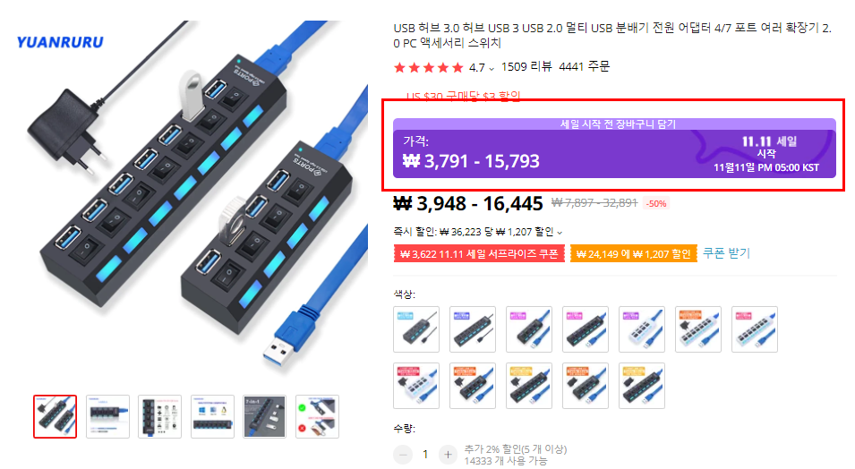 광군제 알리익스프레스 카드 할인쿠폰 11월 프로모션코드 USB허브 직구 후기 포스팅은