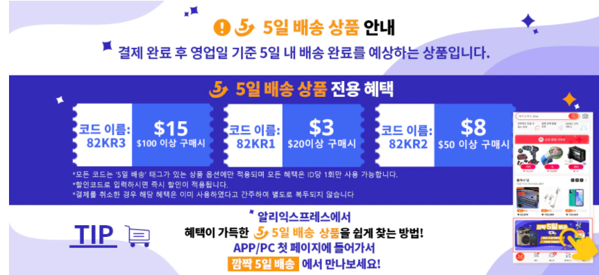 알리익스프레스 앱이나 PC를 사용해달라고 되어 있어요.