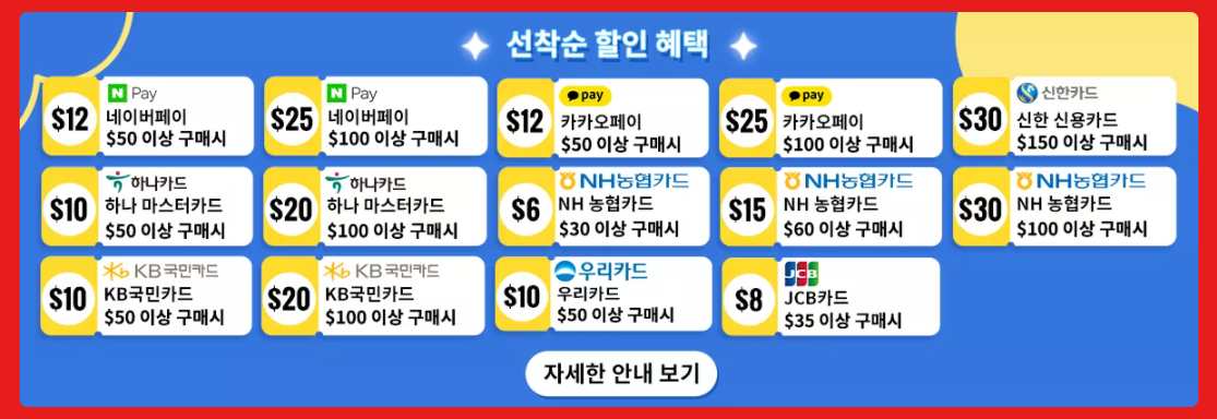 카드사별 할인혜택은 모두 선착순이라고 합니다.
