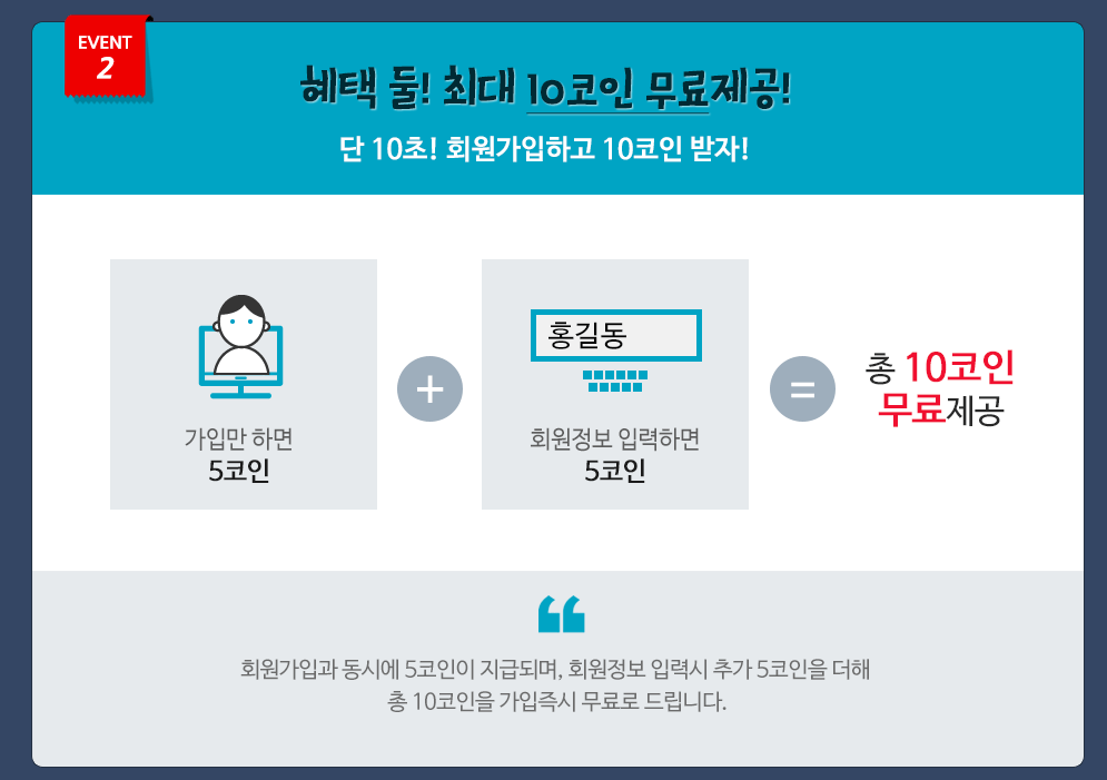 이벤트 기간 동안 30코인 무료충전