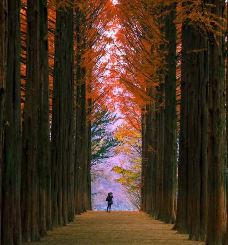 은행나무와 곧게 뻗은 전나무숲은 남이섬을 대표하는 풍경입니다.