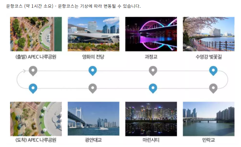 운항코스 (약 1시간 소요) - 운항코스는 기상에 따라 변동될 수 있습니다.