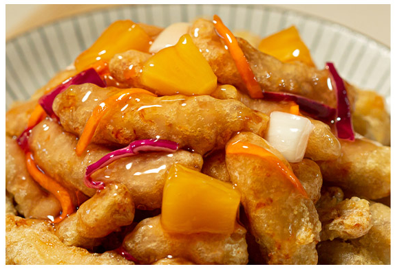 과일과 야채를 더한 새콤달콤 특제소스를 맛보실 수가 있어요.