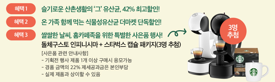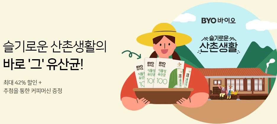 BYO유산균을 최대 42%할인에 추첨을 통해 커피머신까지 받을 수가 있어요.