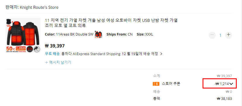 그럼 이상으로 열선 발열자켓 구매 내돈내산 알리익스프레스 12월 프로모션쿠폰 포스팅을 마치겠습니다.