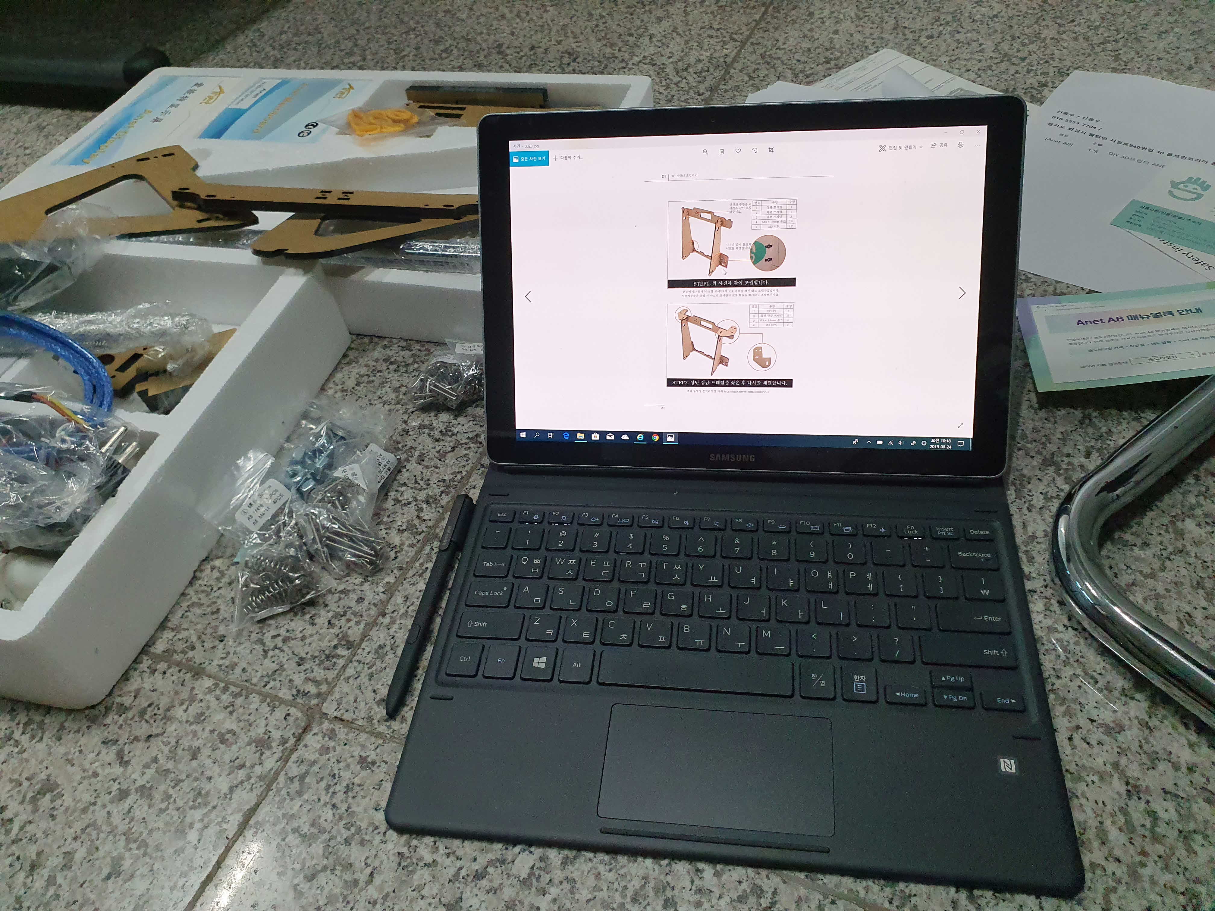 조립을 하기위해 갤럭시북에 메뉴얼을 뛰어놓고 나름데로 잘 정돈한 상태에서 시작을 했어요.