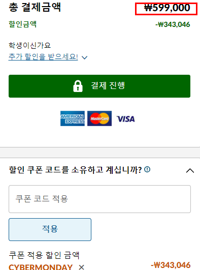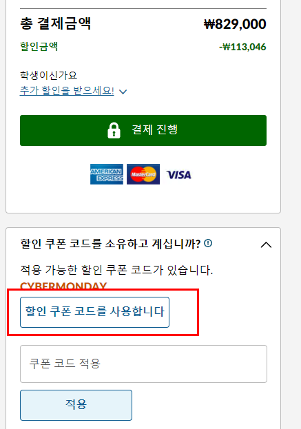 할인 쿠폰코드를 사용하면 추가할인을 받아서
