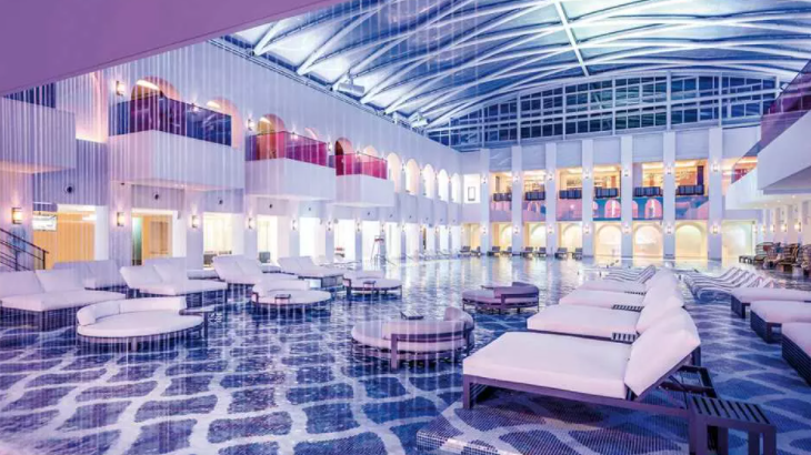 럭셔리하고 트렌디한 아쿠아 스파 존은 아쿠아 액티비티 뿐만 아니라 다이나믹한 LED 미디어 아트와