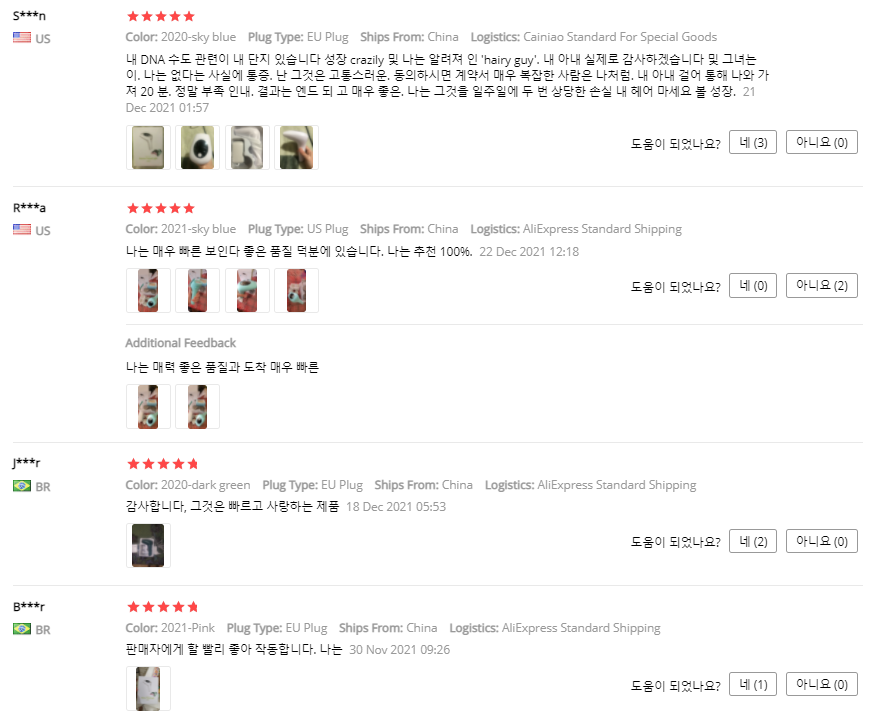 다른 국가에서 구매한 후기를 봐도