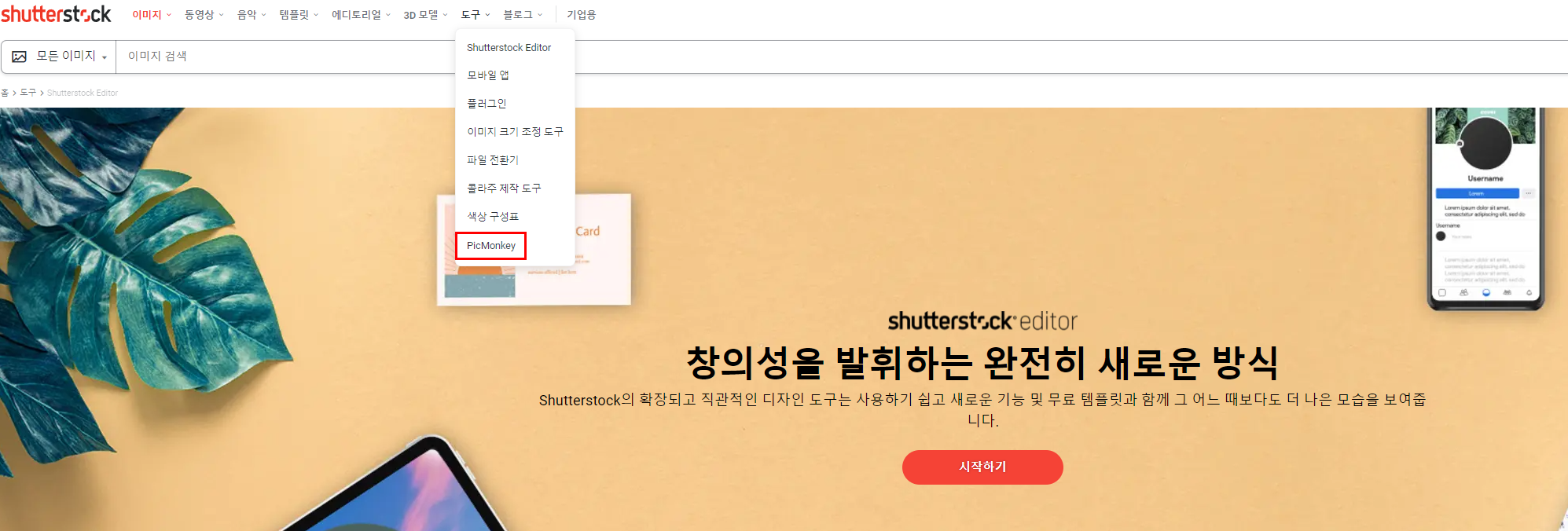 그리고 셔터스톡의 무료 템플릿 수정 프로그램 픽몽키도 소개해드릴게요.