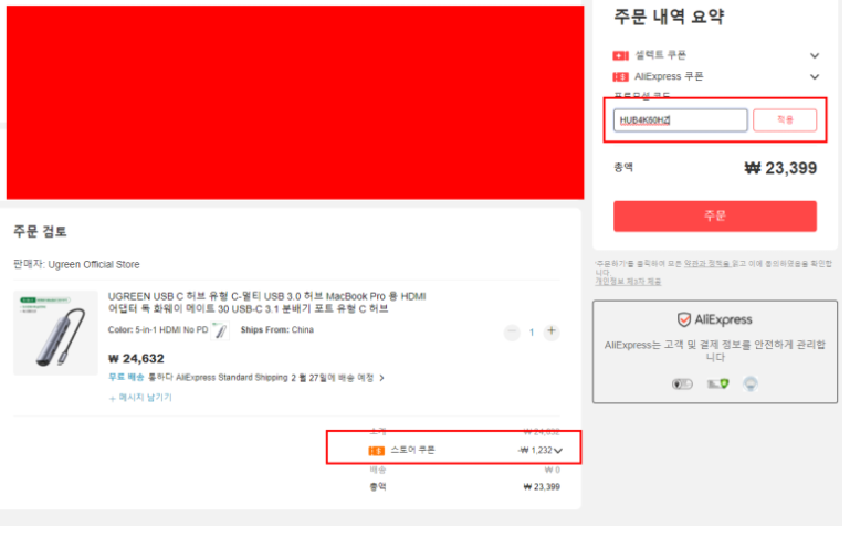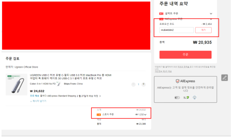 알리익스프레스 프로모션코드 와 스토어 쿠폰을 동시적용해서