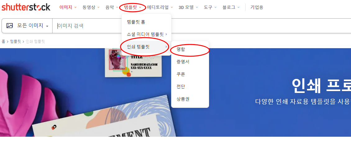 이번에는 셔터스톡에 명함용 템플릿 사용방법을