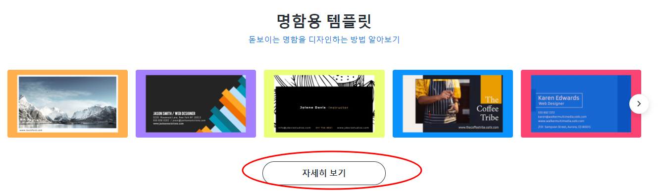그 다음 명함용 템플릿에서 자세히보기를 클릭~!