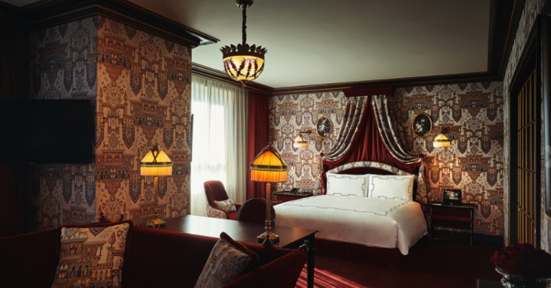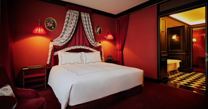 섬세한 자수 벽지와 미러 폴딩도어가 특징인 아틀리에 스위트에서 휴식을 만끽할 수가 있어요.