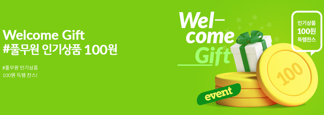 첫구매시 인기상품을 100원에 구매할 수 있는 행사에요.