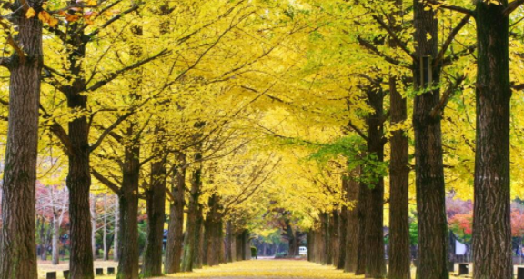 아름다운 남이섬 가로수길을 따라 산책을 즐기세요.