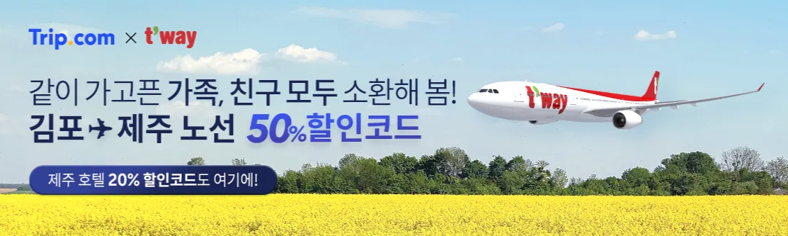 티웨이 트립닷컴 김포 제주 항공권 티켓노선 호텔 파격 특가 할인쿠폰 포스팅은 제휴마케팅이 포함되어있습니다.