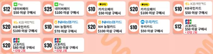 *JCB는 금액대별로 2번씩, 그 외 카드사와 카카오페이/ 네이버페이는 금액대별로
