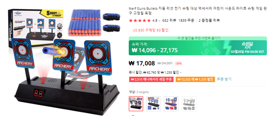 하단의 내용은 너프건 과녁판에 대한 알리익스프레스 상품상세페이지 내용입니다.