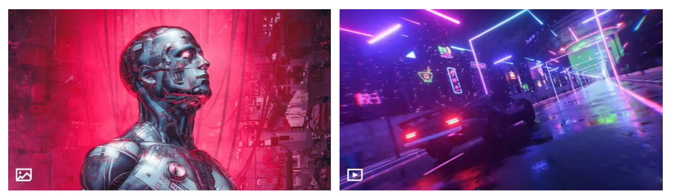 PicMonkey의 템플릿과 사용이 편리한 도구를 통해 디자인에 아름다운 사이버펑크 요소를 가미해 보세요.