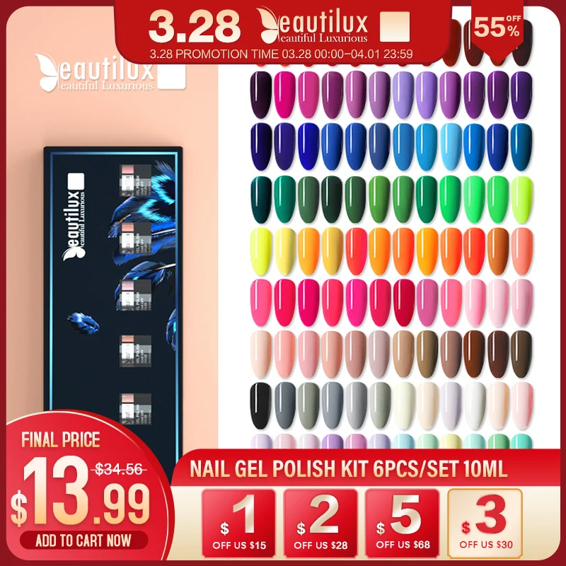 Beautilux Nail Gel Polish Kit 6pcs/set x10ml Soak Off UV LED Nails Varnish Set Semi Permanent Nail Art Gels Lacquer Gift Box DIY