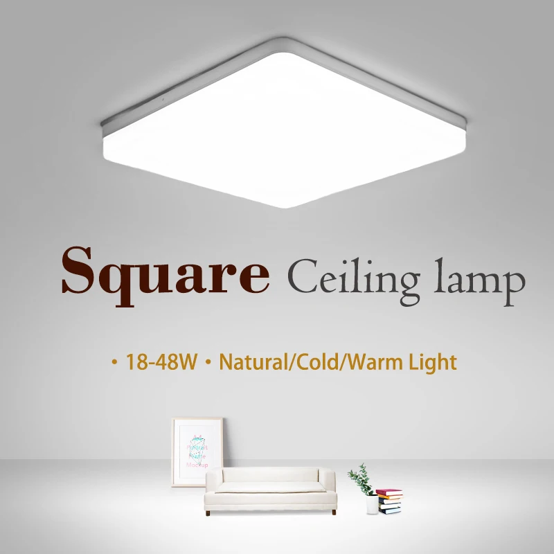LED Ceiling Lamp in Square for living room Natural Light Warm/Cold White Modern Home 48/36/24/18W for Bedroom Kitchen lighting