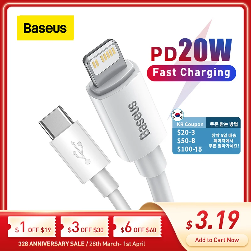 Baseus USB Type C PD 20W Cable for iPhone SE 11 Pro X XS 8 Fast USB C Cable for iPhone Charging Cable USB Type C Cable Wire Code