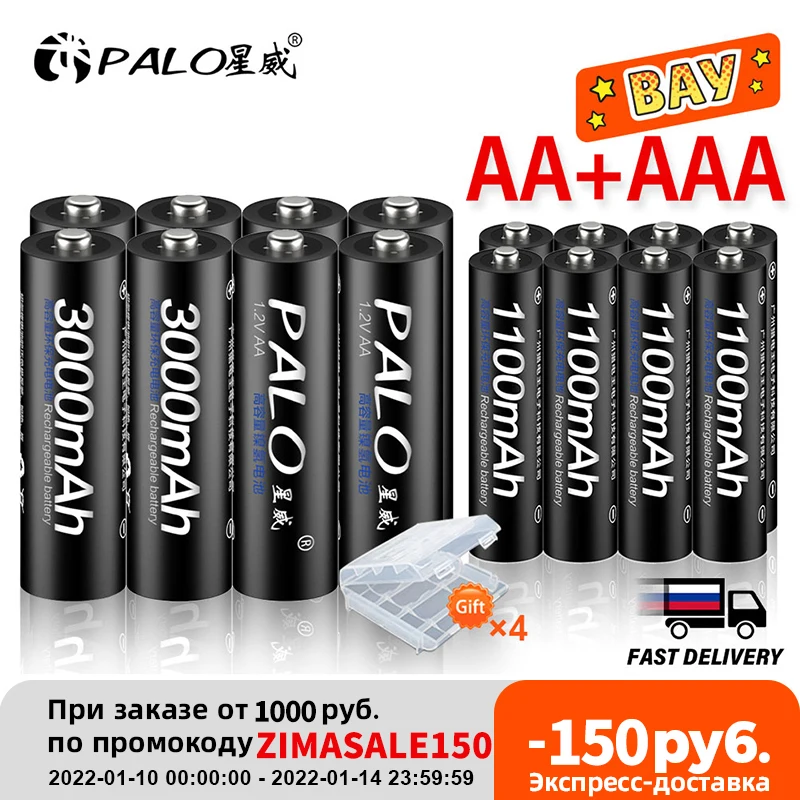 PALO 4Pcs 3000mAh 1.2V AA Rechargeable Batteries+4Pcs 1100mAh 1.2V AAA Battery NI-MH AA AAA Rechargeable Battery for Camera Toy