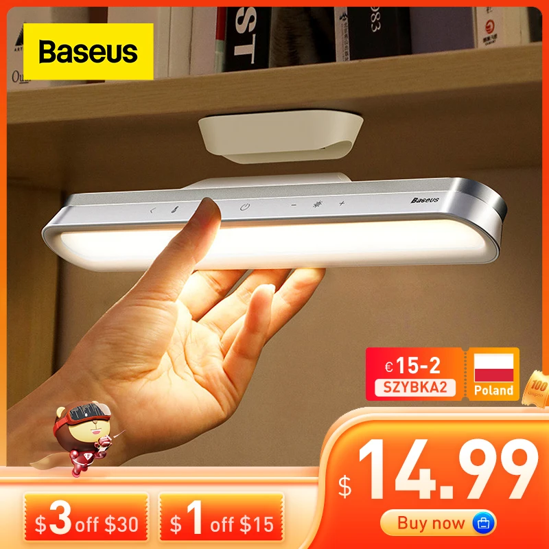 Baseus Desk Lamp Hanging Magnetic LED Table Lamp Chargeable Stepless Dimming Cabinet Light Night Light For Closet Wardrobe Lamp