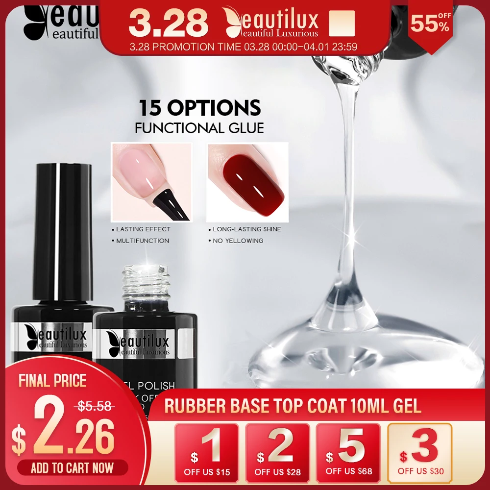 Beautilux 1pc Gel Nail Polish Color Soak Off UV LED Nails Gel Varnish Lacquer Long Lasting Easy Apply Gels Nail Art Supply 10ml