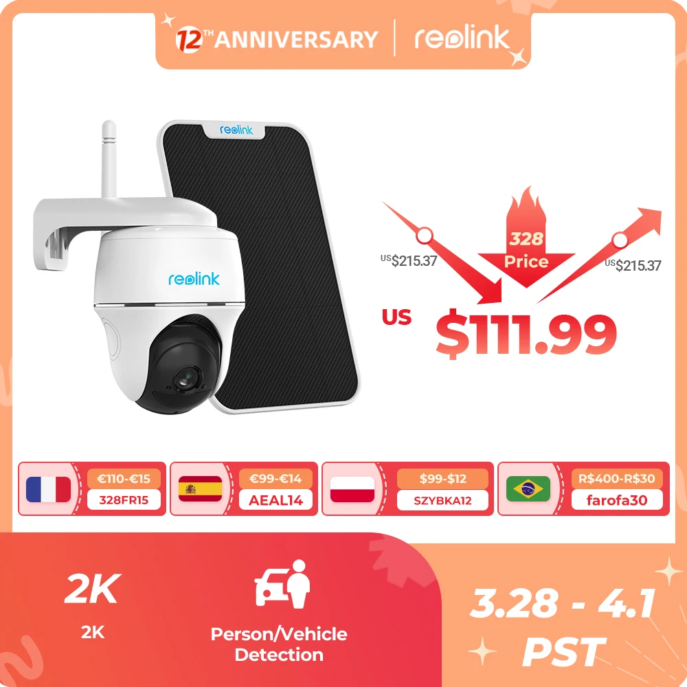 Reolink IP Surveillance Camera Argus PT 4MP Battery WiFi Wireless Pan & Tilt CCTV Camera for Indoor Outdoor Security