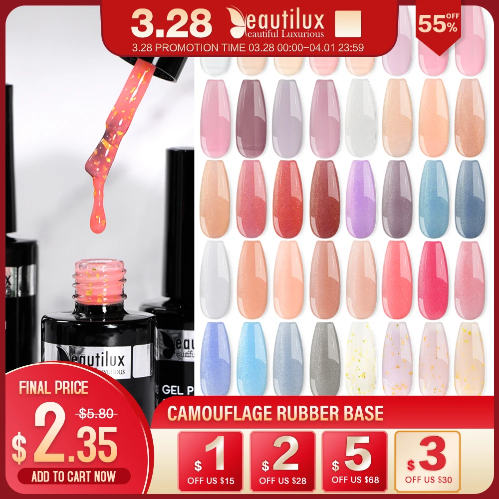 Beautilux Camouflage Rubber Base Coat Gel Milk Base For Nails White Beige Gels Nail Polish Semi Permanent Nails Ridge Filler10ml