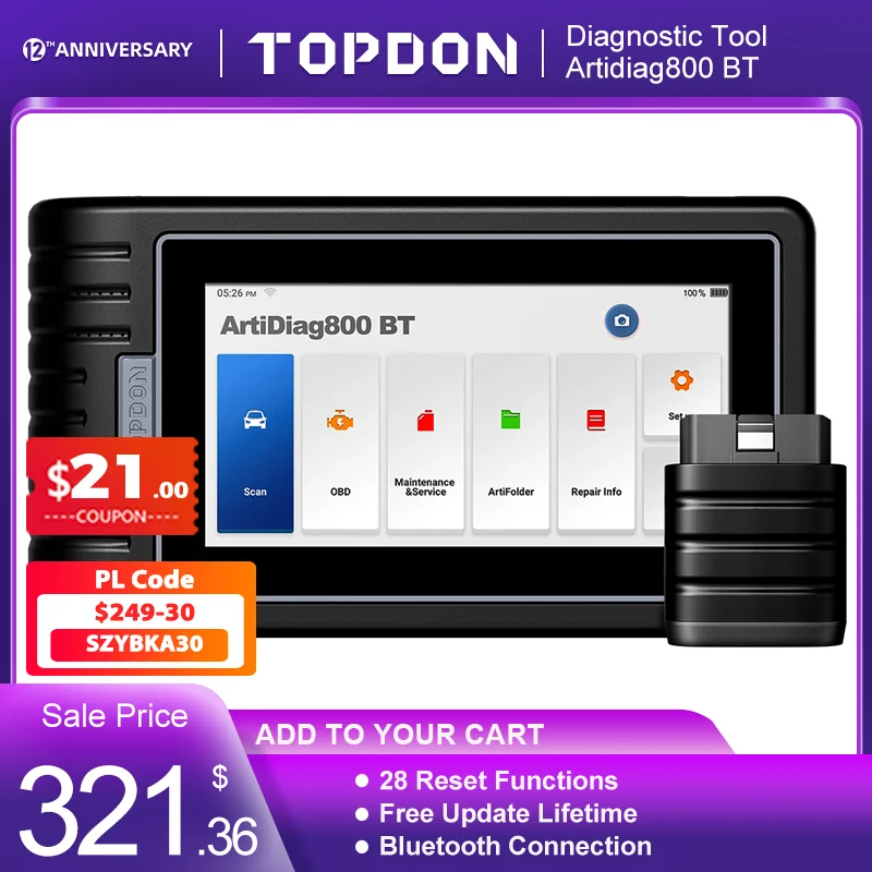 Topdon Car Diagnostic Tool ArtiDiag800 BT OBD2 Automotive Scanner Professional ABS SRS DPF Oil 28 Reset Auto Car Diagnostic Tool