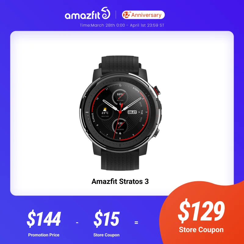 IN Stock Global Version New Amazfit Stratos 3 Smart Watch GPS 5ATM Music Dual Mode 14 Days Smartwatch For Android