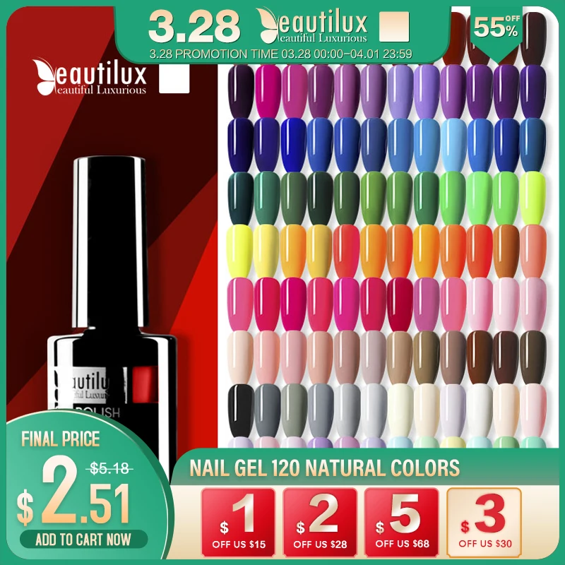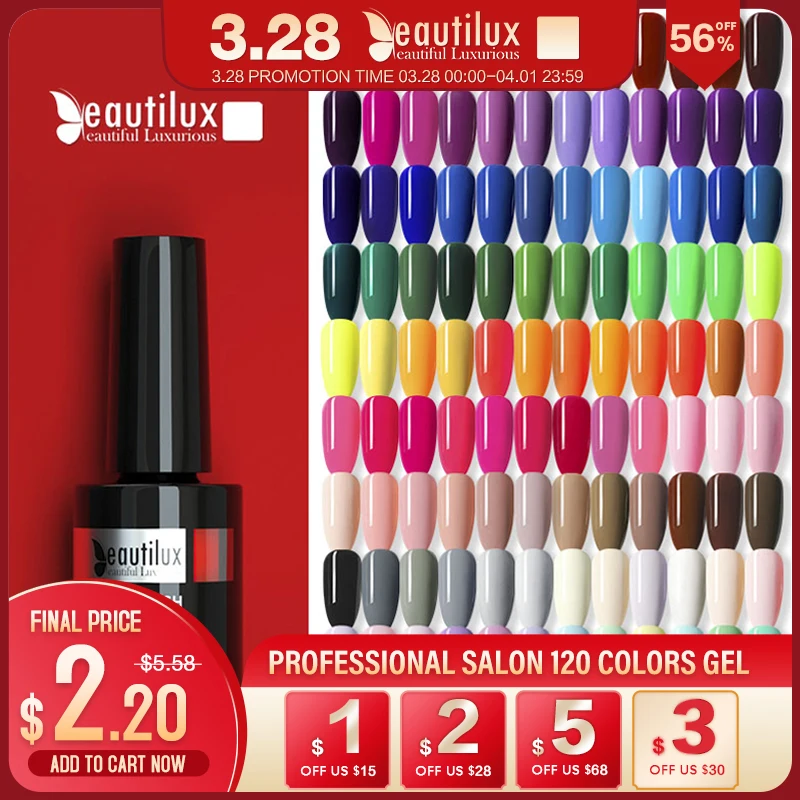 Beautilux Fashion Gel Nail Polish 120 Colors Professional Salon Nails Art Gels Varnish UV LED Semi Permanent Nail Lacquer 10ml