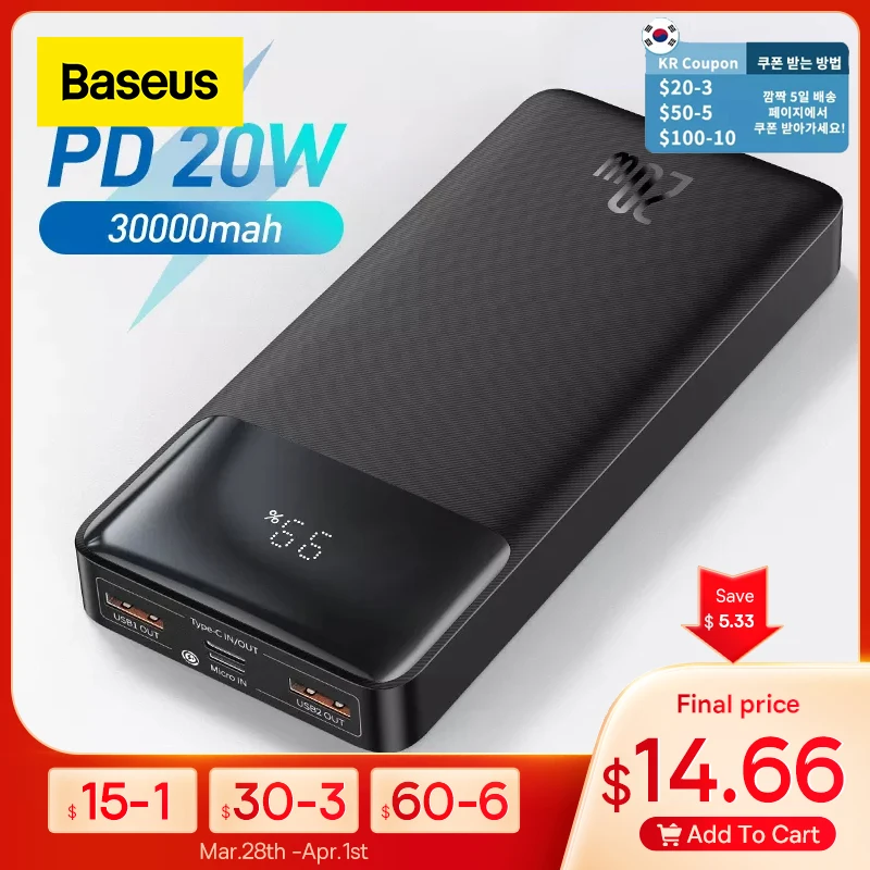 Baseus Power Bank 30000mAh Portable Charging Poverbank Mobile Phone External Battery Fast Charger Powerbank For IPhone 13 Xiaomi
