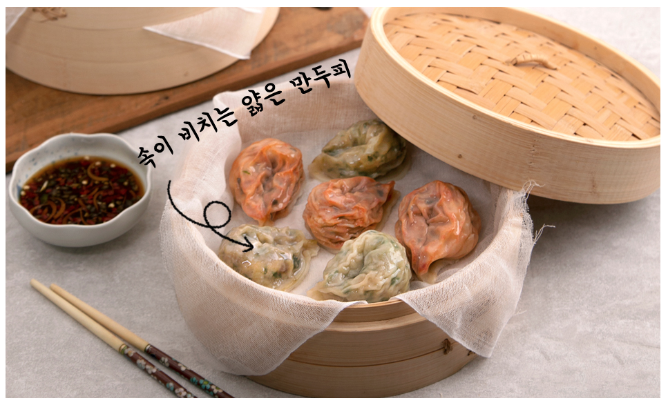 0.7mm 얇은 만두피는 만두피가 접히는 부분이 최소화되어,