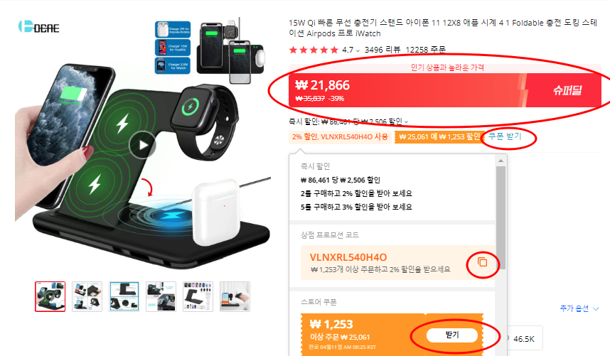 슈퍼딜 상품으로 선정되어서 기본할인 + 프로모션코드 + 스토어 쿠폰으로