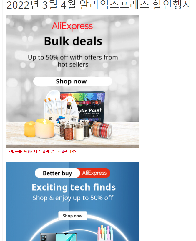 2022년 3월 4월 알리익스프레스 프로모션코드 할인행사 정보 -